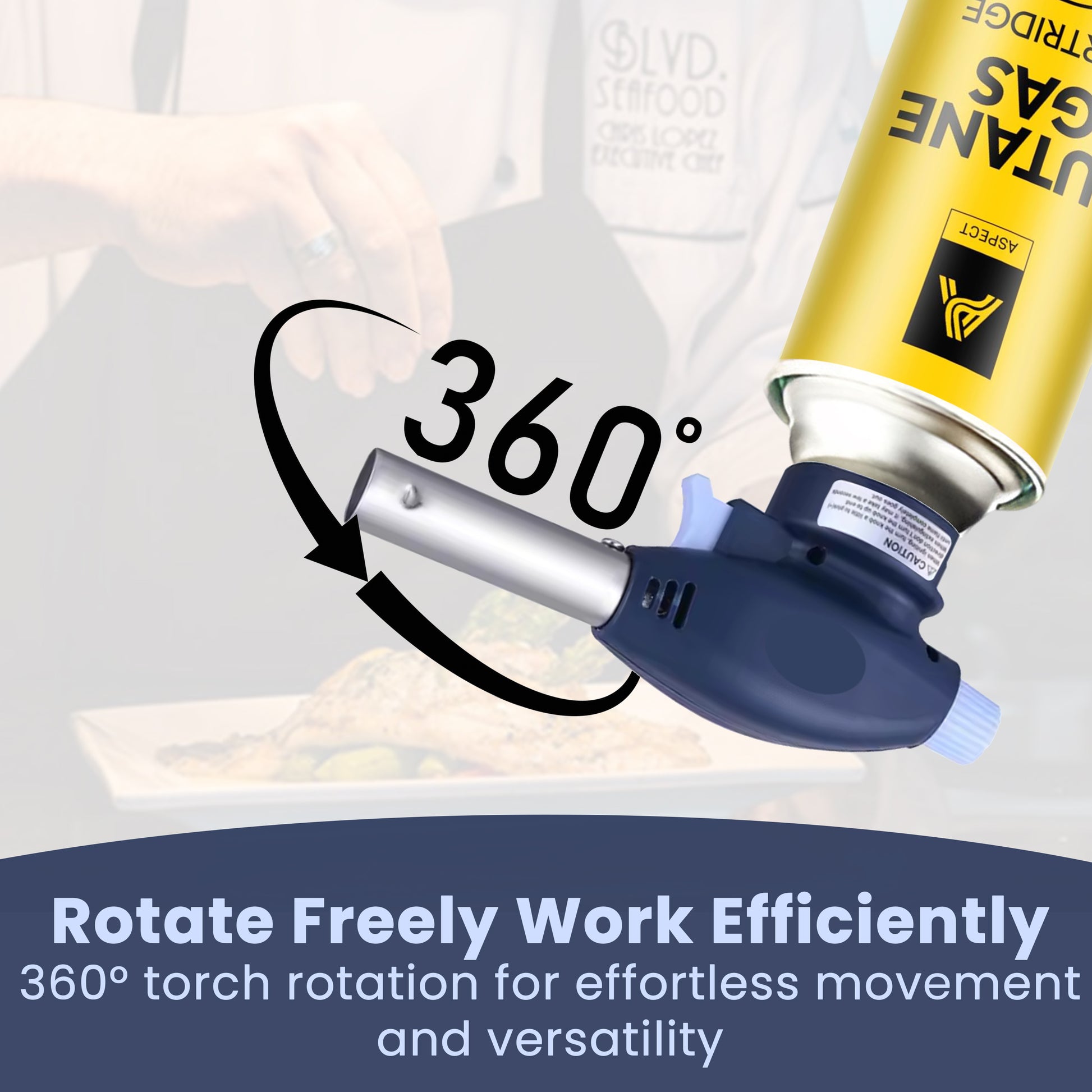 Aspect Blow Torch Head Butane Weed Burner Auto Ignition Welding Gas Flamethrower for Cooking, Catering Culinary, Blower Crafts, Camping BBQ & Fire Starter (Head + 4 Butane Gas)