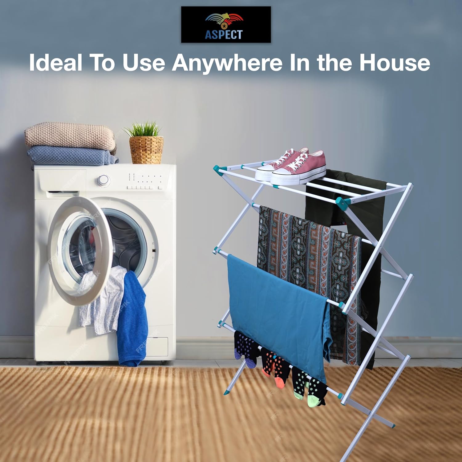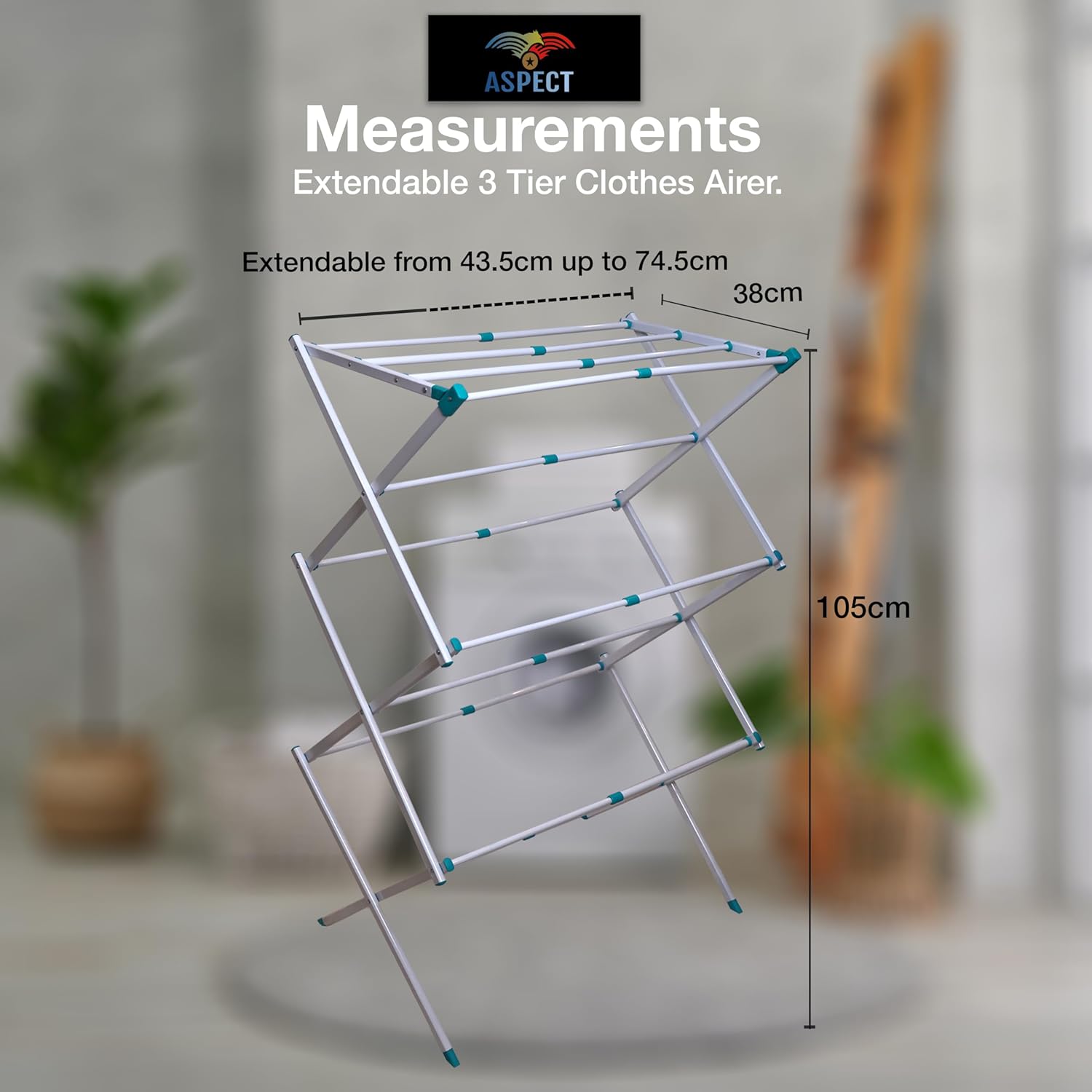Aspect Expandable Clothes Drying Rack, Clothes Airer, Foldable Laundry Drying Rack, 3-Tier Collapsible Clothing Dryer, Adjustable Towel Rack for Air Drying Clothing, suitable for indoor