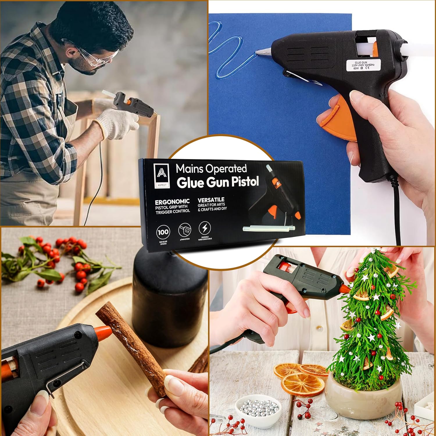 Aspect Hot Glue Gun Mini Fireproof Kit with 100 Glue Sticks 7mm, DIY for School Crafting Arts, Tool, Sealing, Home Repairs, Cards, Cardboard, Plastic and Glass Pistol Design
