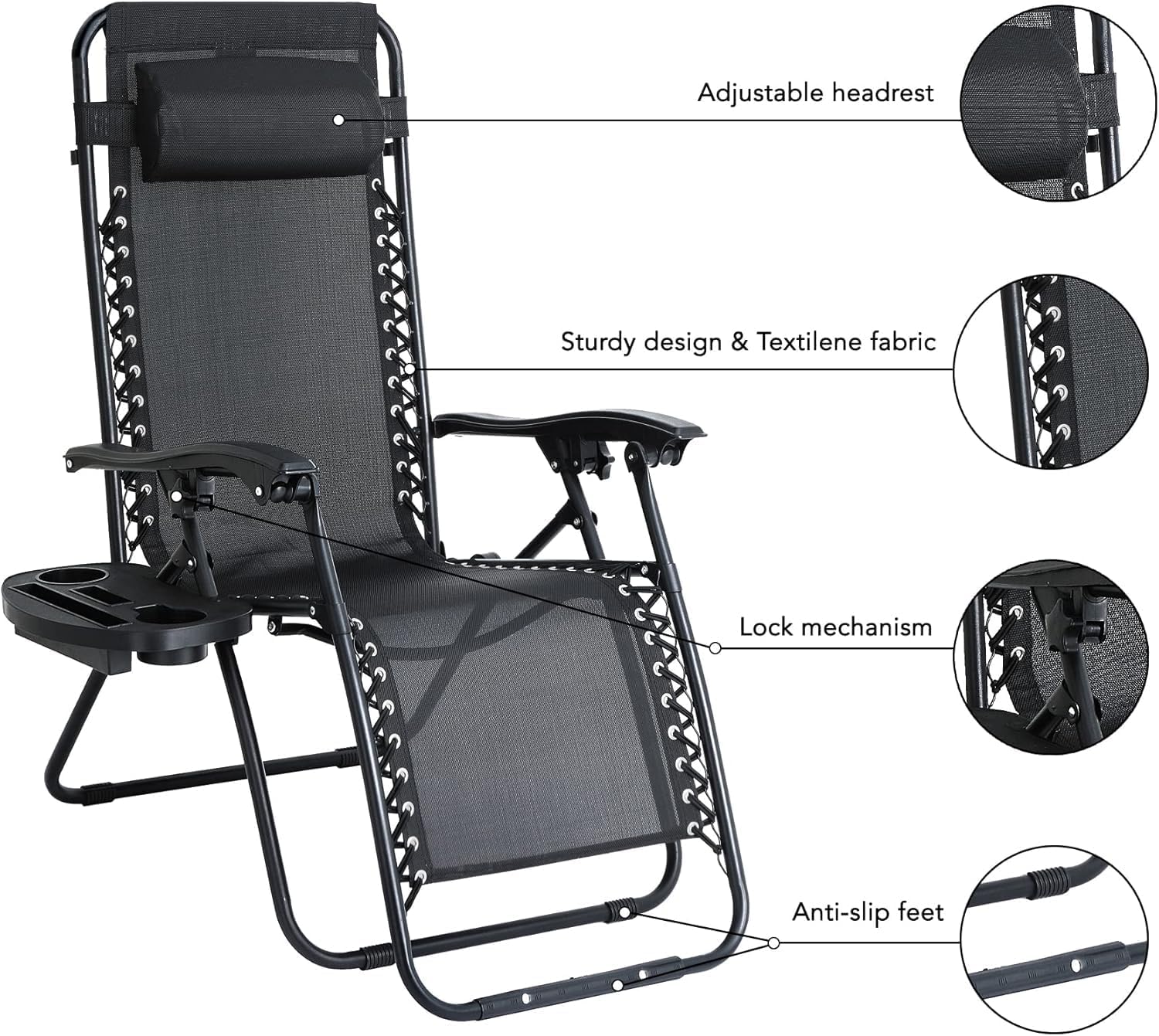 Aspect Zero Gravity Lounger Chair, Outdoor & Garden Sunloungers, Folding Reclining Patio Chair, Cup Holder, Soft Cushion and Headrest for Poolside, Camping, Coffee (Recliner Chair - Black)
