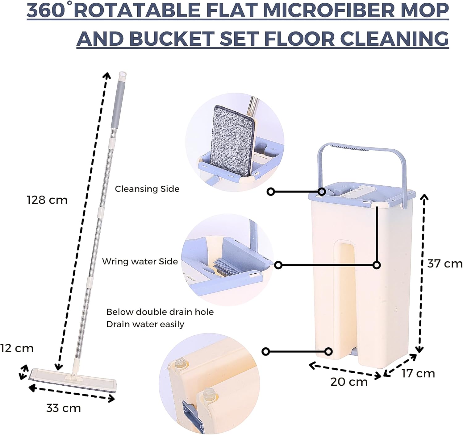 Luxtrous Floor Mop and Bucket Set Easy Flash Speed Mop with Squeeze Bucket Flat Mop for Floor Cleaning, Mini Dustpan and Brush Set 360 Rotating Head with 2 Micro fibre Pad.
