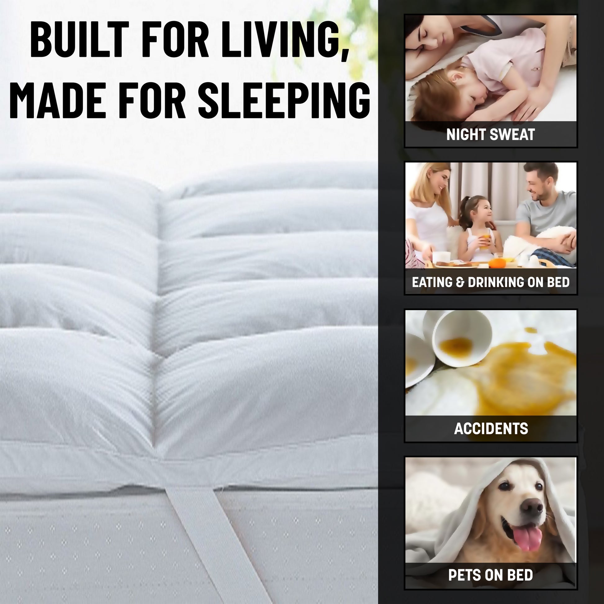 Luxtrous Mattress Topper Double Bed 10cm Thick, Premium White Quilted Extra Deep Ultra Fluffy and Breathable With Strong Elastic Bands, Comfort & Supports Restful Sleep